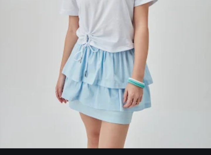 SAIA SHORTS COM BABADOS EM TRICOLINE AZUL CLARO - TWOIN