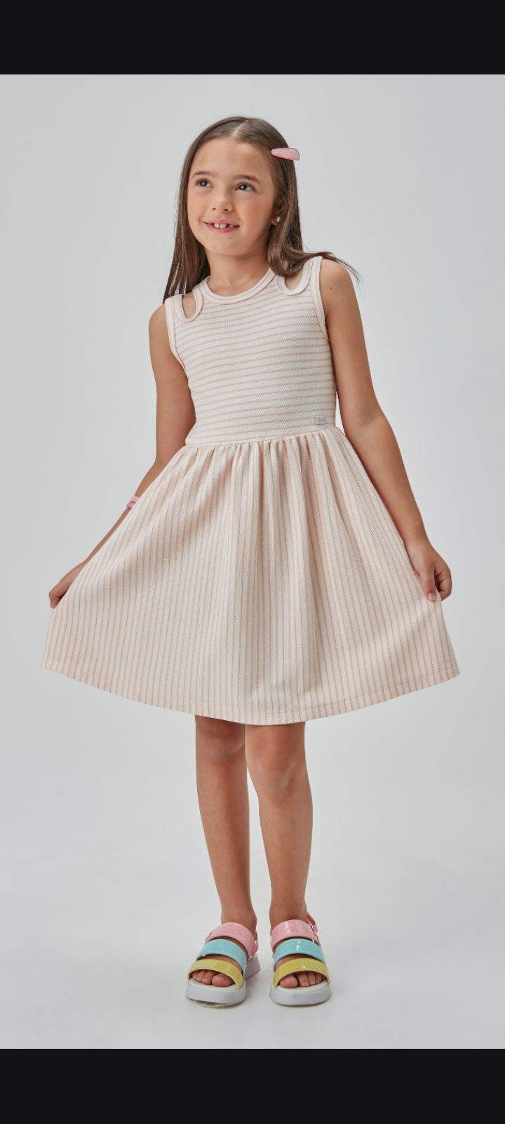 Vestido em malha creponada com listra cor rosa claro - BEABÁ