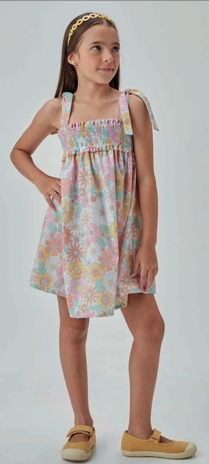 Vestido em tricoline yestampada liberty com busto em tastex multicolorido - BEABÁ